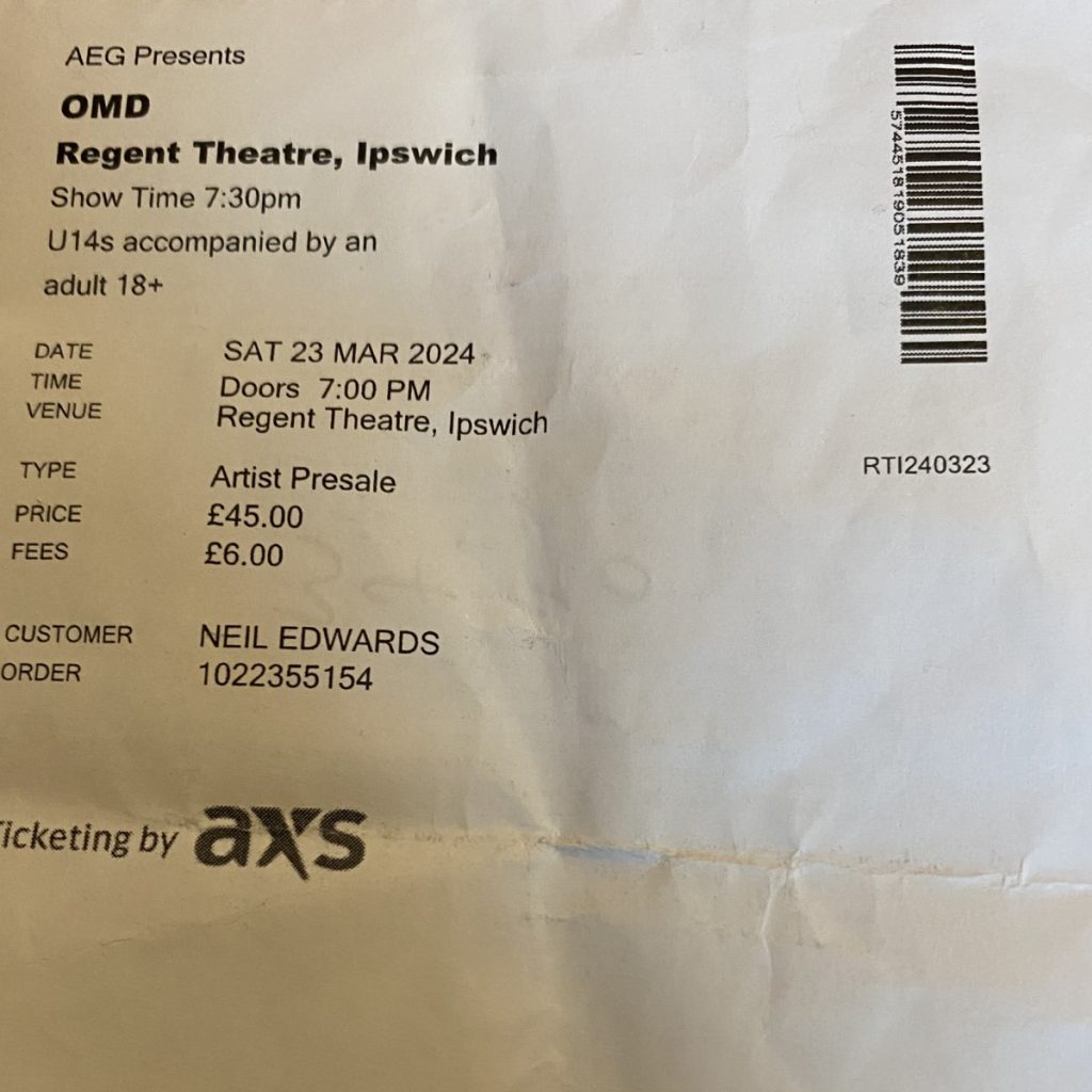 After catching Orchestral Manoeuvres in the Dark (OMD) at Let’s Rock Ipswich in September 2022 and again at Audley End in August 2023, I was thoroughly hooked. So, when another chance came to see them live in Ipswich, Hammy and I grabbed tickets immediately and were joined by Neil for the full trio experience.